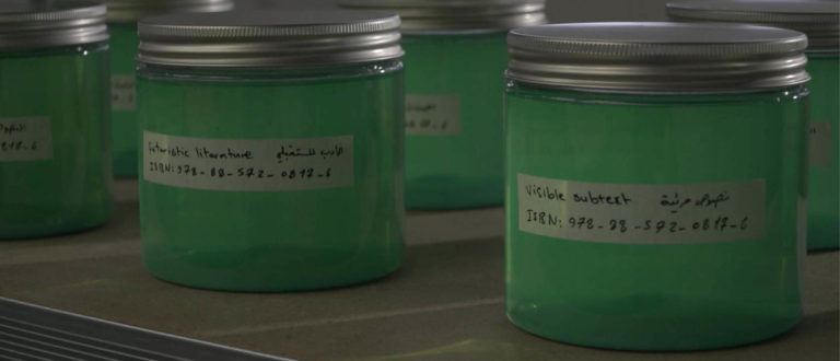 Watch Soapy Postmodern Bathwater a short film (24 minutes) produced by Fehras Publishing Practices for the Sharjah Biennale 13 Tamawuj in 2017. The film takes the viewer into a not-so-distant future, to a language laboratory where researchers analyse the bodies of people who have collapsed while reading bilingual art books. The film is a part of the series of Institutional Terms; a long-term research project that follows the impact of the language, term, and institution on global artistic practices.