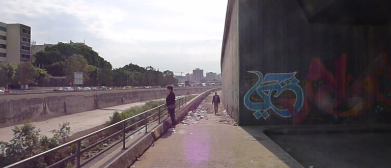 The Line (Mustapha Jundi, 2013, 3.5 minutes) observes the urban border, river and highway of Beirut River. We are offered glimpses of daily life along this ribbon of water and concrete.