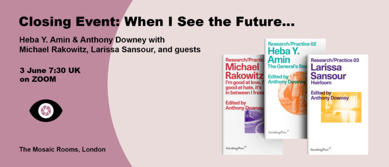 To conclude Heba Y. Amin’s solo exhibition When I see the future, I close my eyes, join curator Anthony Downey and Heba Y. Amin for a roundtable conversation with artists Michael Rakowitz, Larissa Sansour and invited guests from the extended digital programme that accompanied the show. Through Downey’s edited Research/Practice book series, launched in 2020, the artists will discuss the impact of unfolding geopolitical events on the future development of their respective projects and question, more broadly, how art research/practice engages with contemporary crises.
