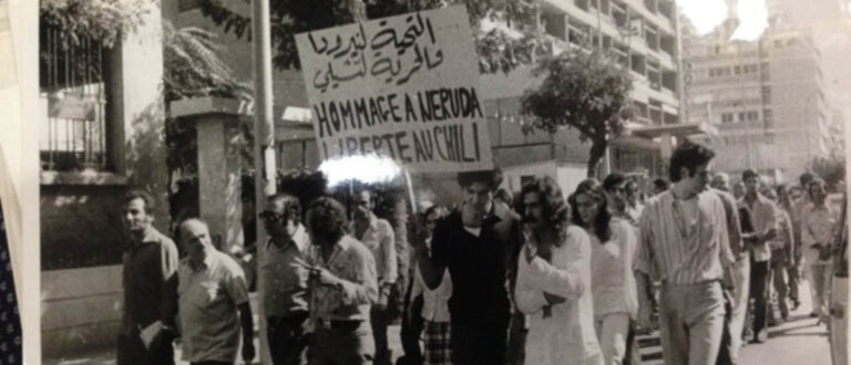 Image 1: Protest in Beirut in 1973, in support of the resistance against the Pinochet coup d’état in Chile. Photographer unknown. Courtesy of Rasha Salti.