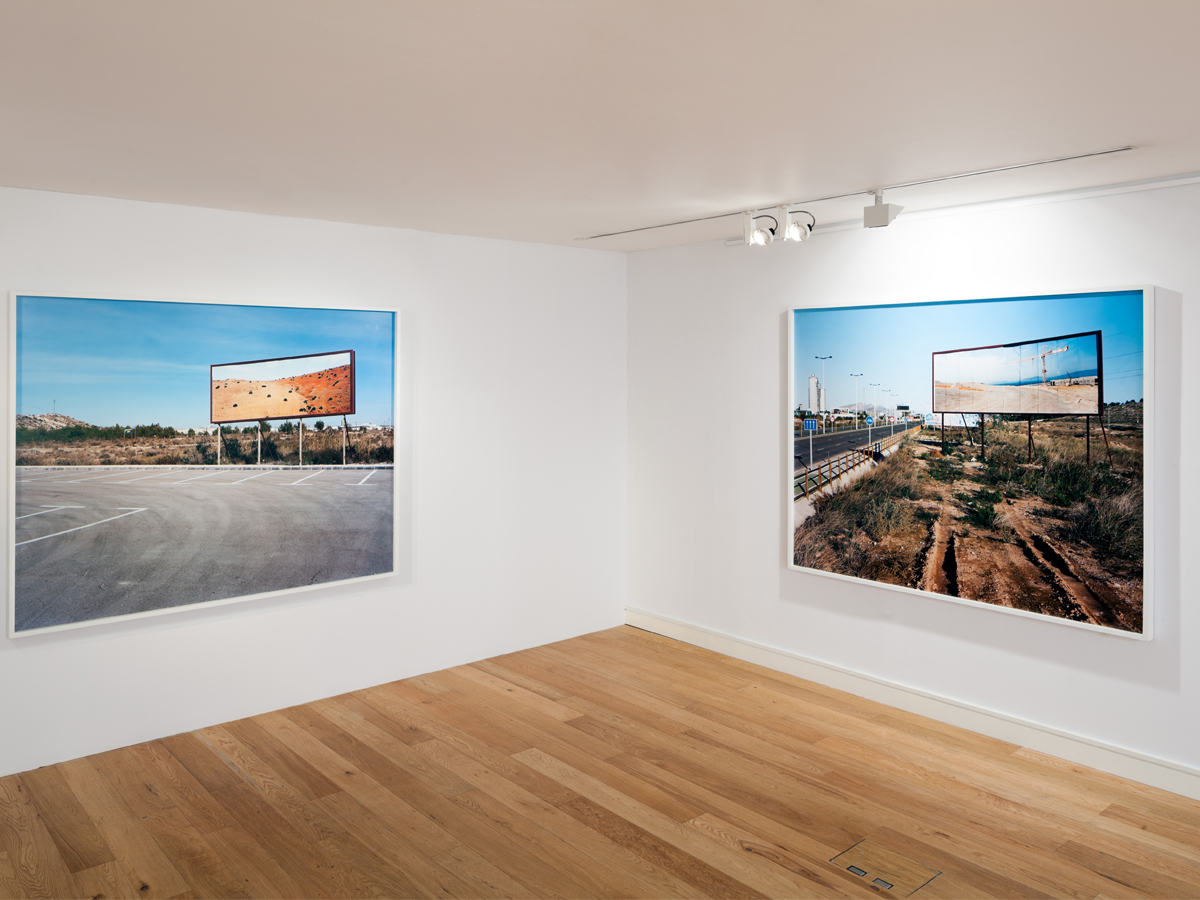 Often straying from the conventional tropes of Romanticism, the landscapes presented in this exhibition focus on the Mediterranean as a place that visually articulates concerns of memory, conflict, colonisation, migration, emptiness and expanse. From Corinne Silva’s Moroccan-within-Spanish wastelands in Imported Landscapes (2010), to Paola Yacoub’s invisible remnants of the Lebanese Civil War in Elegiac Landscapes (2001), Ursula Schulz-Dornburg’s photographs of Syria (2010) and Jananne Al Ani’s stills from her aerial film Shadow Sites II (2011), the works evoke layers of imperialism and history, alongside prescient ruin and destruction. In video works by Noor Abed and Halida Boughriet, the picturesque evaporates, as questions of economic and political migration surface through human narratives of movement. These ‘moving photographs’, like their still counterparts, explore political inequalities between the Global North and the Global South.