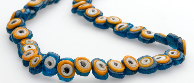 Image 1: Apotropaic necklace of 49 glass beads; unknown artist; collected by Tawfiq Canaan in al-Khalil, Palestine (Wellcome Museum, London).