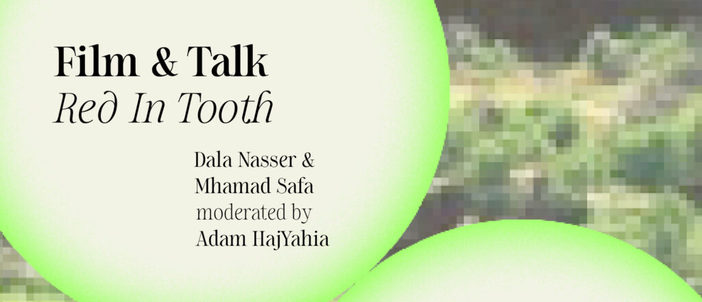 Join us at LUX for the UK premiere of Red in Tooth by Dala Nasser. The film will be screened at 7pm, 7.20pm and 7.40pm, followed by a conversation at 8pm with the artist and Mhamad Safa, moderated by Adam HajYahia.