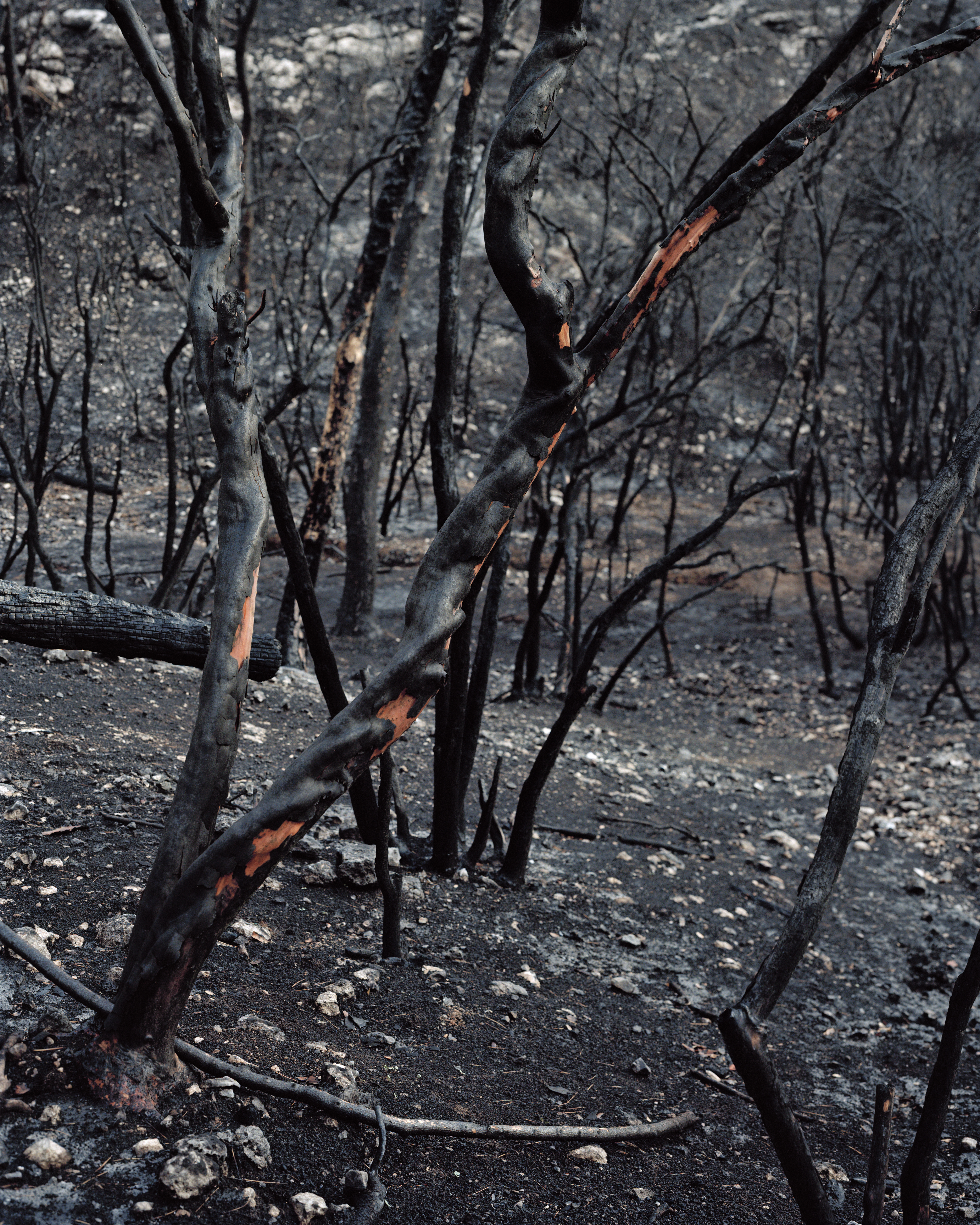On the occasion of the her exhibition Garden State at The Mosaic Rooms, artist Corinne Silva has printed a limited edition print from the Wounded series photographed in 2013. Wounded is a series of nine photographs, taken shortly after a devastating fire in the Carmel Forest in Northern Israel, accompanied by sound recordings made by the artist as she pushed her way through the waist-high foliage that had grown in its place three years later.
