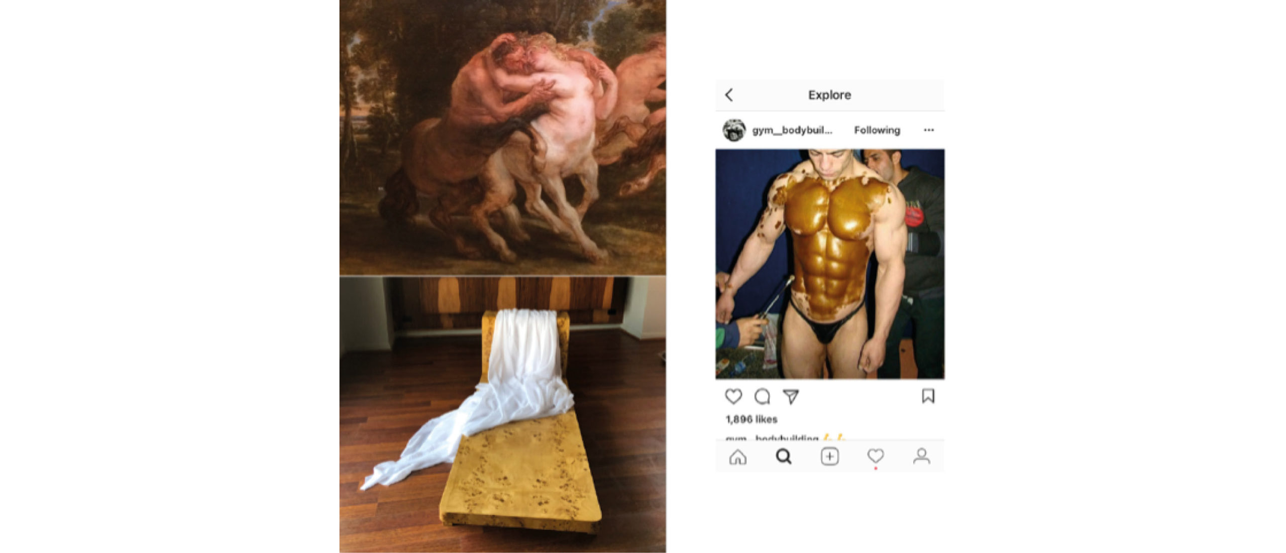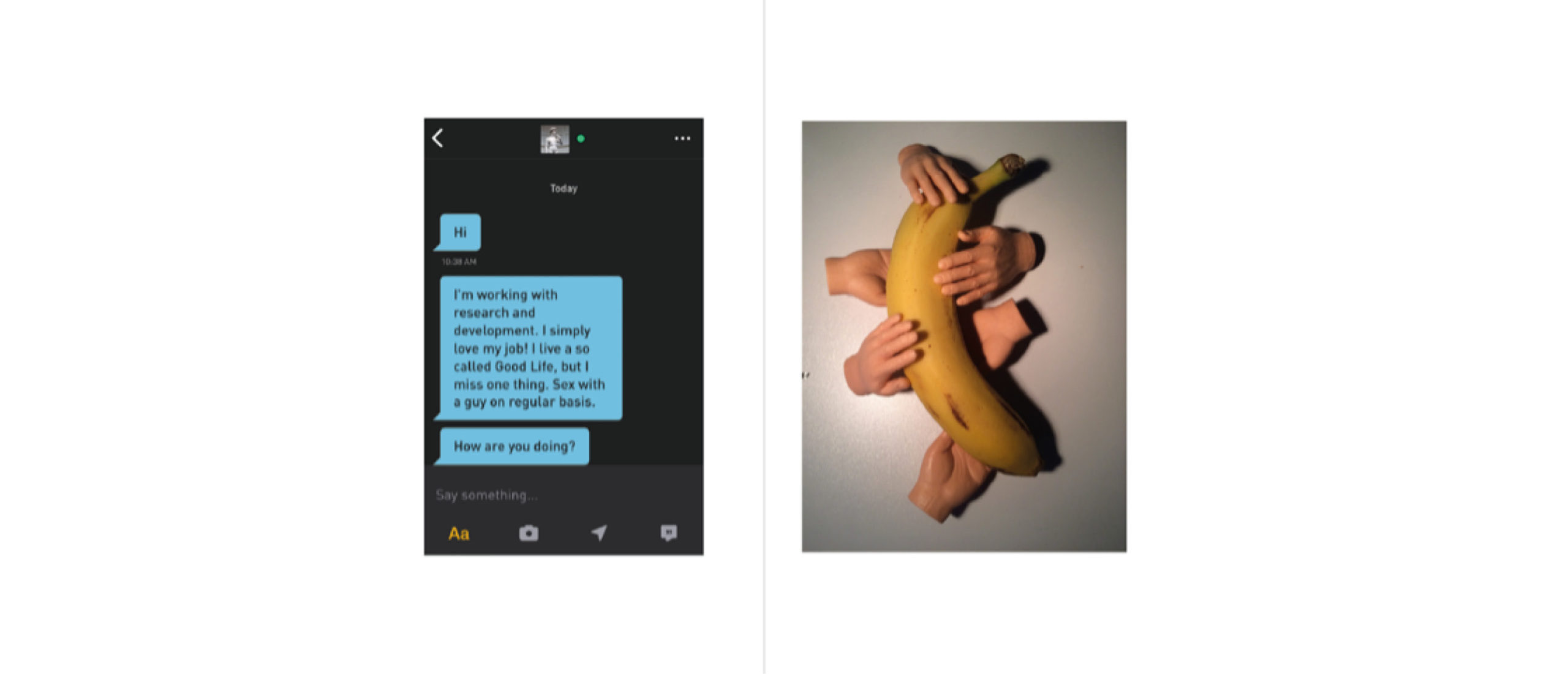Drawn from an unlocked phone, found in a public toilet, the images and texts present a portrait of a stranger. Moving between the erotic, intimate, baroque and everyday, the compulsive sequence of images references the dissonant and voyeuristic experience of scrolling through social media and swiping in dating apps, and the clash of hyper-capitalist forces of productivity and technology with the intimacy of a queer male gaze.