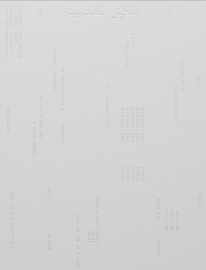 Yesterday, Come Closer is a non-linear visual, aural, and textual experiment in purging and healing through contradiction. It explores Palestinian collective memory through Ibrahem Hasan‘s embodied journey to unpack the complexities of home and belonging. It includes Ibrahem’s own photography and art alongside contributions from photographers, artists and writers. All powered by voices of the resistance.